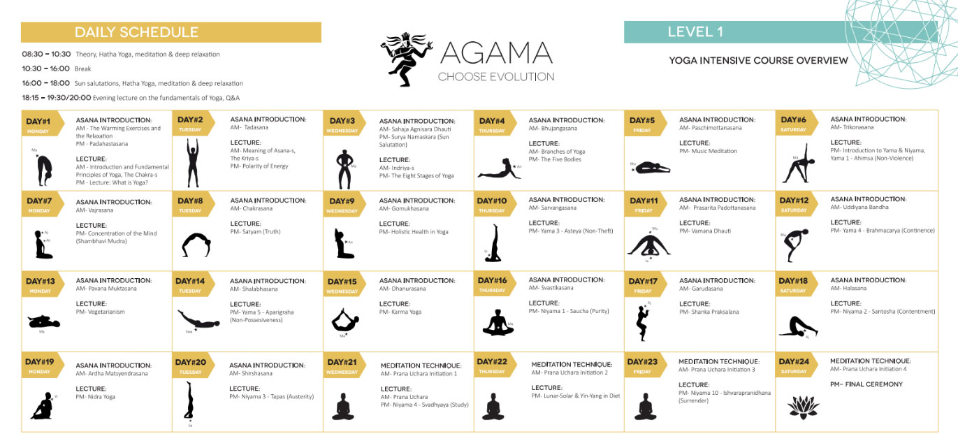 Agama’s Hatha Yoga Retreat – Course Level 1 is a month-long retreat that combines the theory and practice of authentic Hatha Yoga.